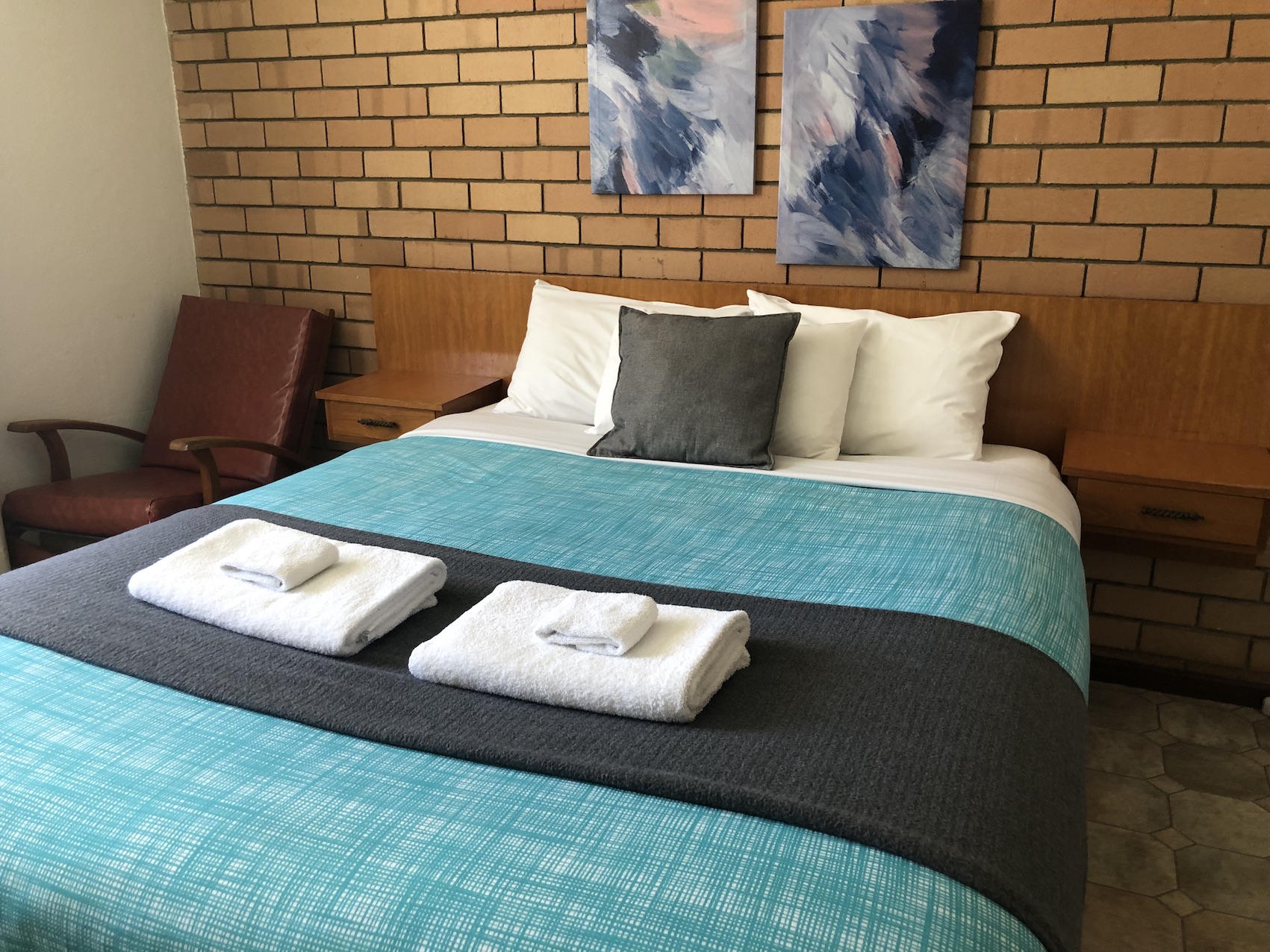 The Master Bedroom has a Queen Bed and the 2nd Bedroom has 2 Single Beds. Our linen is supplied by a professional linen company and is of a high standard. Included is sheeting, blankets, quilts, pillows, towels, face cloths, bath mat, hand towel and tea towels